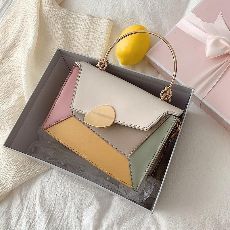 Contrast PU Leather Crossbody Shoulder Messenger Bag